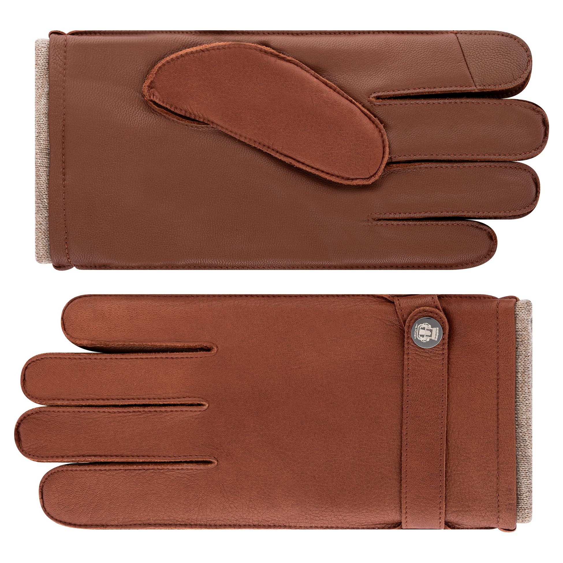 Der Herren Fingerhandschuh Wilhelmshaven ist sowohl aus Ziegennappaleder in der Innenhand als auch aus weichem Hirschleder auf der Außenhand angefertigt. Er ist weich im Griff und sehr strapazierfähig. Der Herren Fingerhandschuh Wilhelmshaven ist mit einer Touchfunktion ausgestattet. Roeckl füttert ihn mit einem weichen sowie warmen Wollfutter. Sie können den Handschuh mit einem Lederriegel schließen. Andere Herren Handschuhe finden Sie hier.