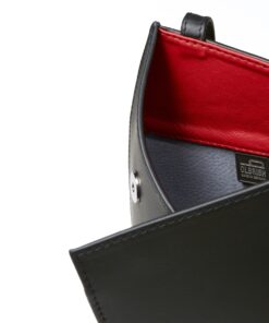 Aus süddeutschem Rindsnappaleder, gefüttert mit Veloursleder, Verstärkungen aus recycelten Lederresten, der Messingbeschlag ist matt silbrig mit Nikel opaco beschichtet.