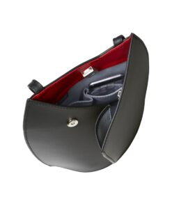 Öffnet sich nach vorn wie ein Hemdkragen und hat viel Platz durch einen großen Boden. Gesichert mit Steckschloss und Magnet.