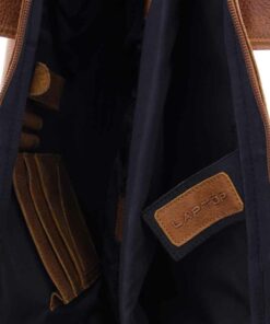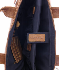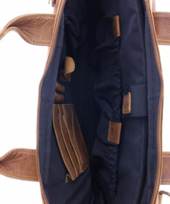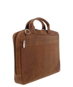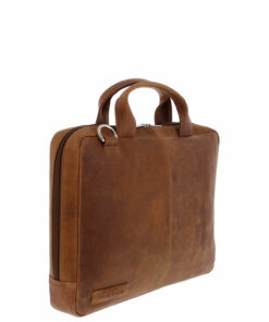 Laptophülle mit Handgriffen für einen bis 14″ Laptop oder 13″ MacBook. Multifunktions-Fächer für u.a. Verkabelung und Maus. Traditionell gegerbtes Leder. Futter in schwarz. Hergestellt in Indien.