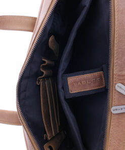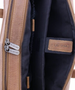 Laptoptasche mit 2 Handgriffen und 2 Fächern, wobei eines für einen 14″ Laptop oder 13″ MacBook geeignet ist. Multifunktions-Fächer für u.a. Handy, Tablet, Visitenkarten, USB-Stick, Stifte und ein Schlüsselbund. Schulterriem mit Schulterpolster (abnehmbar). Futter in schwarz. Hergestellt in Indien.