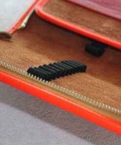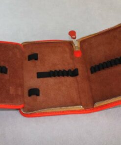 Die Schulmäppchen haben Schlaufen für 22 Stifte, 1 Füller, 1 Lineal sowie für Radierer und Anspitzer. Das Lederetui hat eine Klappe mit einem Fach für Stundenplan und Geodreieck.