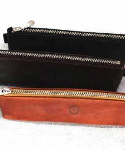 Das Lederetui hat ein Hauptfach mit einem Reißverschluss.