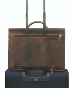 Die Zeppelin Retro Aktentaschen von der Firma Plevier aus den Niederlanden 17,3 Zoll (ca. 44 cm) sind aus pflanzlichem Leder mit Vintage Optik gefertigt. Sie hat drei Hauptfächer. Außerdem verfügt sie über zwei gepolsterte Fächer sowohl für den Laptop als auch für ein Tablet. Des Weiteren gibt es Multifunktionstaschen für Mobiltelefon, USB-Stick, RFID-Tasche, zwei Stiften und ebenso für Visitenkarten. Darüber hinaus gibt es einen abnehmbaren Schlüsselanhänger aus Leder sowie eine dehnbare Tasche für eine Maus, Kabel oder ähnlichem. Die Zeppelin Retro Aktentaschen haben einen Handtrageriemen und einen abnehmbaren Schulterriemen mit Polster. Auf der Rückseite befindet sich eine Trolley Befestigung.
